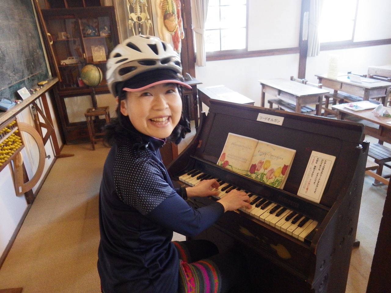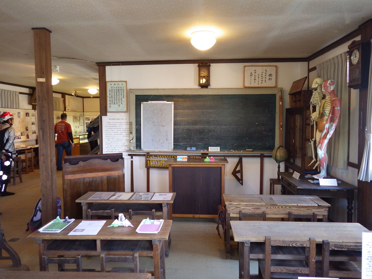 こんな机と椅子やったなぁ・・・・、大きな算盤や骸骨や人体模型もあった。