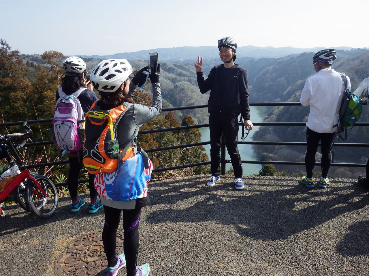眼下に高山ダム湖が見えます。