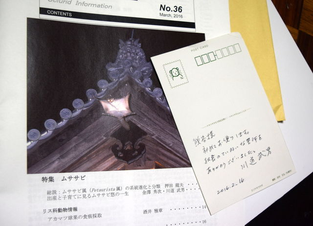 「威嚇するかのように大口を開け、まさに飛びかからんとしている・・・云々」とあるが、おそらく、屋根で寝ていたネコが雷に驚いて落っこちてきたのだろう・・・。