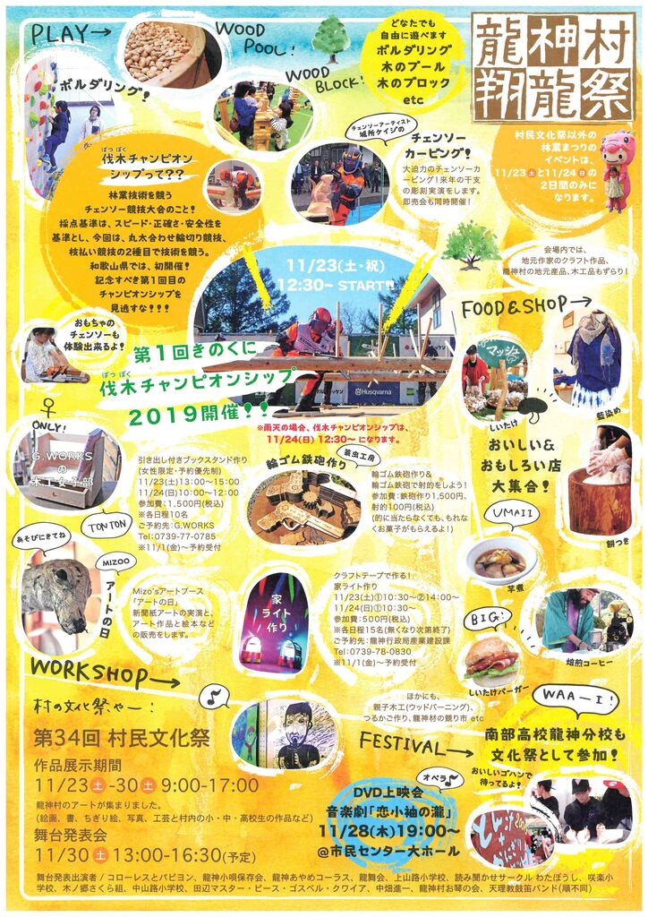 昨年から林業まつり、村民文化祭のどちらも龍神市民センターで開催しています。
