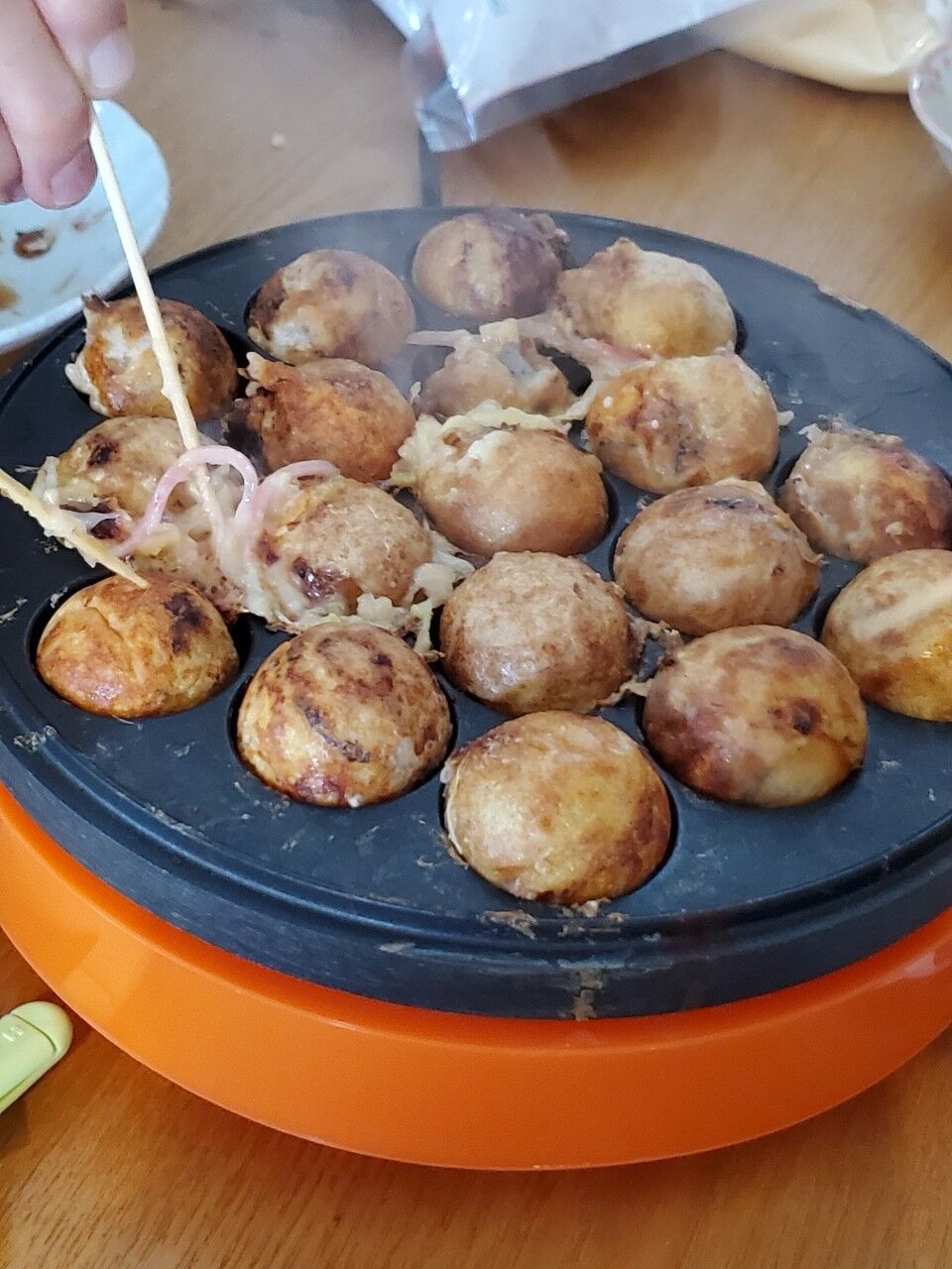 次の日は小雨が降り天気悪かったので、家の中でタコ焼きパーティー🎵