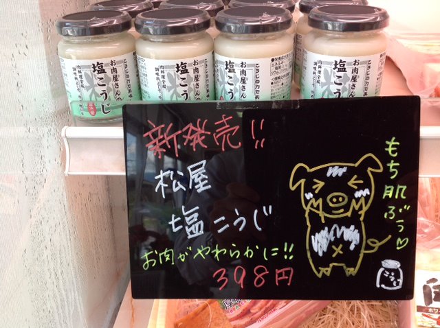 2012年07月26日 塩こうじオマケセールのお知らせ (肉のくまざき本店) コメント数:0 コメント カテゴリ:経営店 by kumatiku お肉がやわらかくなる調味料「塩こうじ」。大変キョーミがあるものの、いざ買って試すとなると。。。そんなお客様に朗報です。明日・明後日の二日間、肉のくまざき本店で3,000円以上お買い上げのお客様に「お肉屋さんの塩こうじ」(定価398円)を1本プレゼント! ぜひご家族で「塩こうじ漬け」に挑戦してみてはいかがでしょうか?皆様のお越しを心よりお待ちしております。