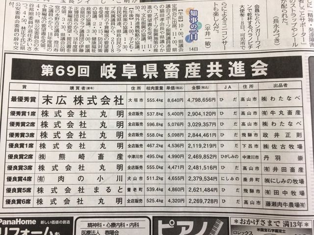 昨日12月15日の中日新聞岐阜県版にセリ結果が掲載されておりました。(息子さんの名前で出品したそうです)