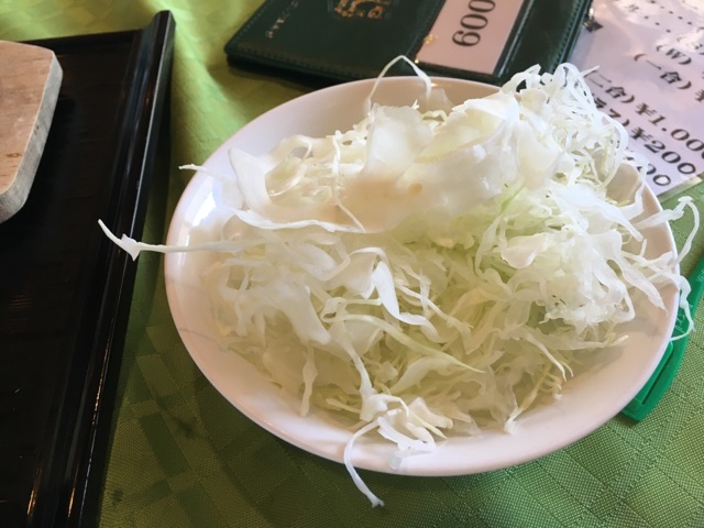 サービスのサラダバーでキャベツを調達して