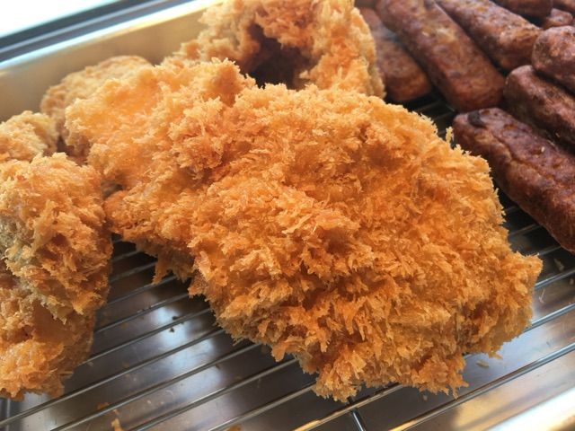 パン粉は通常のとんかつやチキンカツに使っているものより細かいものを使いました。