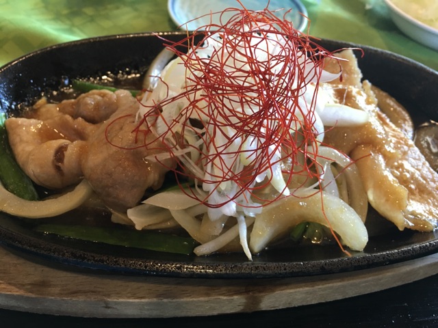 お昼にいただいたのは「生姜焼き定食」ご飯は半分。