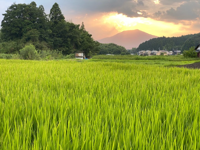 ところでこちらは先月末に草刈りを終えて帰る途中に撮った夕方の風景。