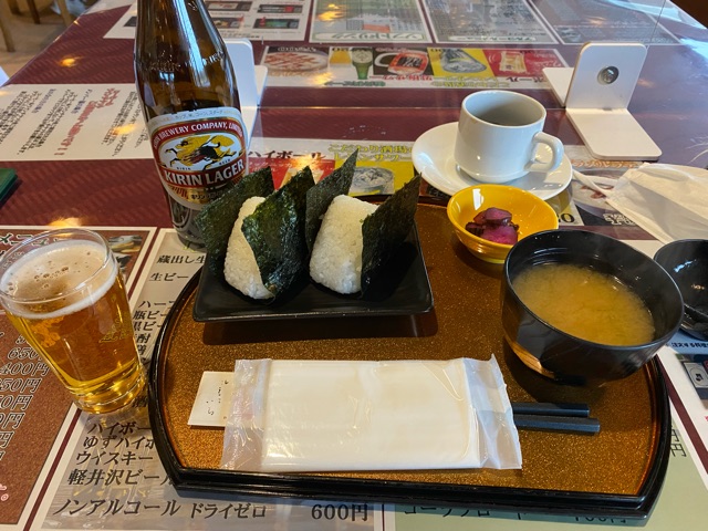 朝はおにぎりセット500円を食べました。おにぎりが大きくて美味しい。