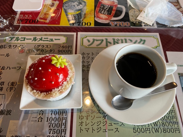 食後のケーキとコーヒーも無料なのでつい食べてしまう。