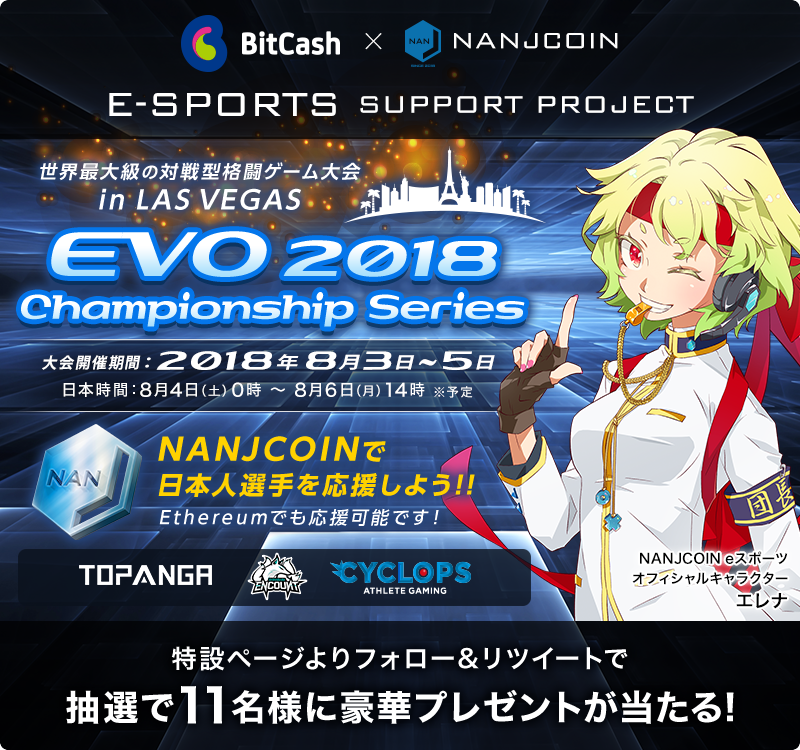 世界最大規模のeスポーツ大会「EVO 2018」に出場する格闘ゲームプレイヤーを仮想通貨NANJCOINで応援しよう!