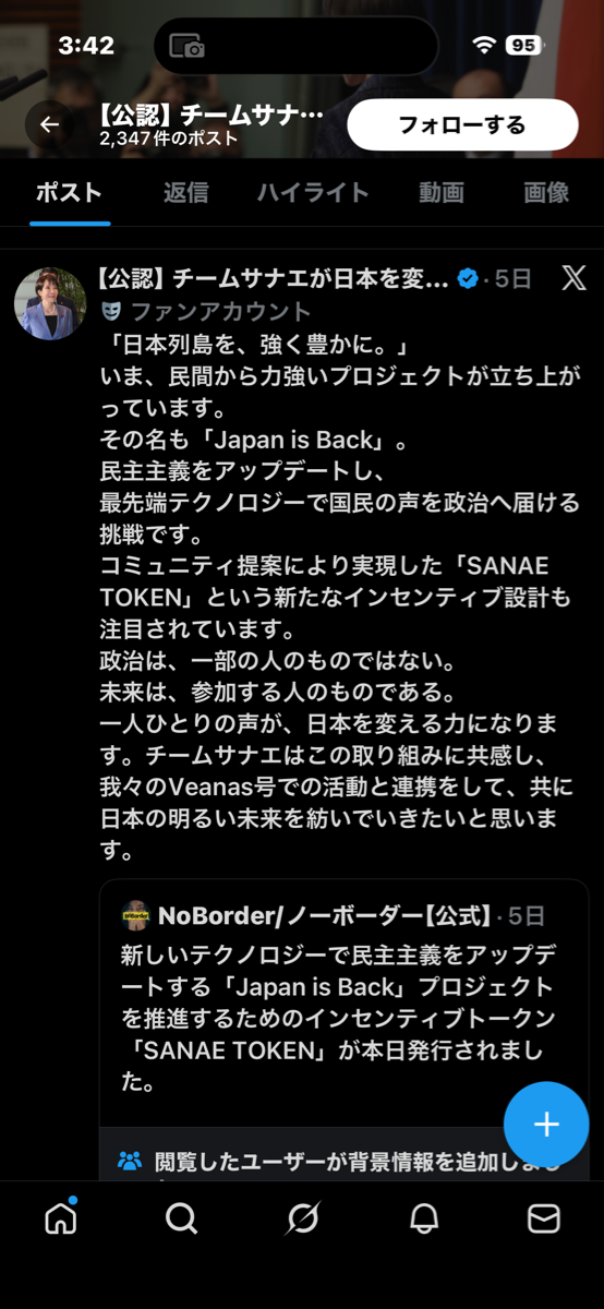 ポスト読んだけど仮想通貨って書いてないしサナエトークンコミュニティとしか書いてない