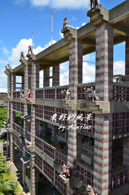 下の写真は名護市役所の壁面を飾っている多種多様なシーサー。