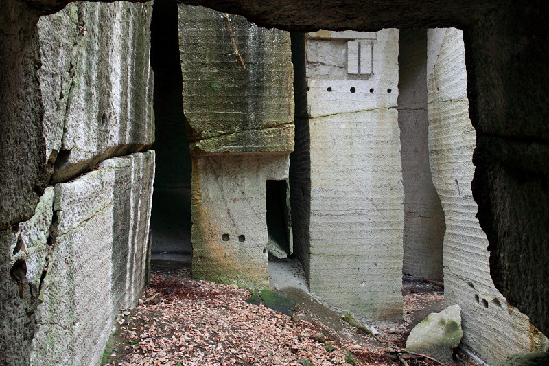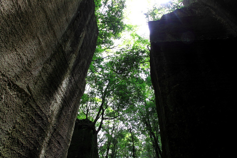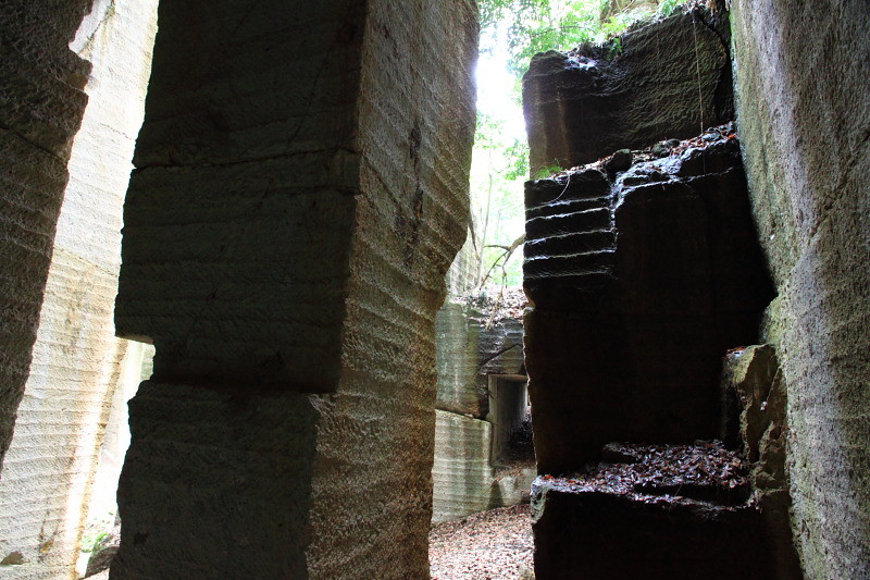 石を切り出す際に打ち込んだ杭の跡がクッキリ残っている。
