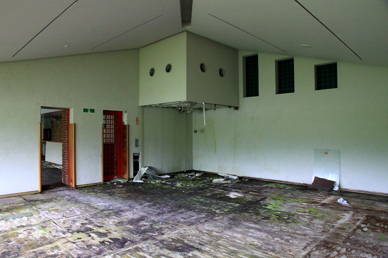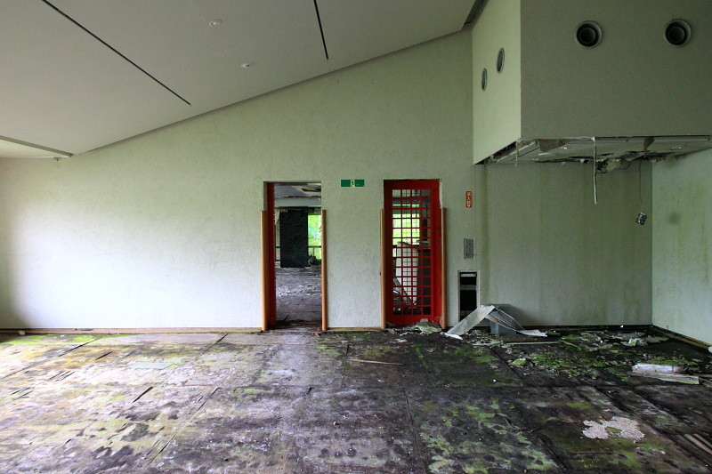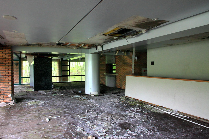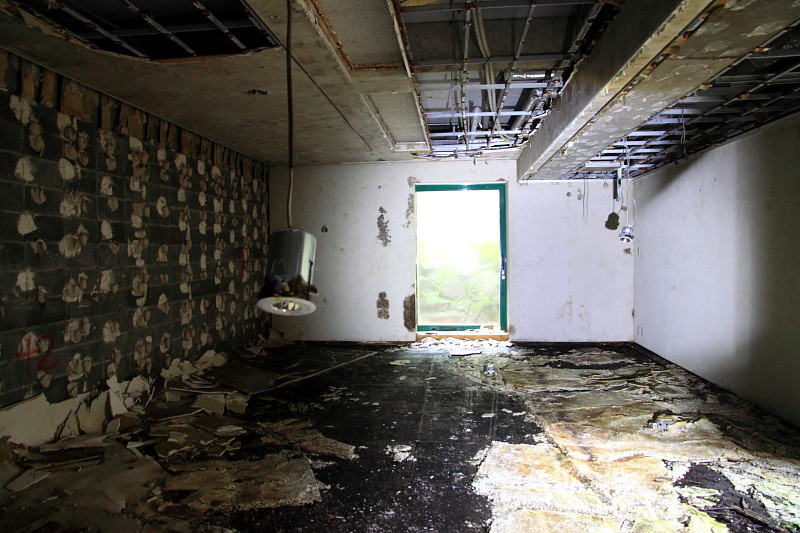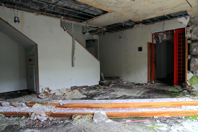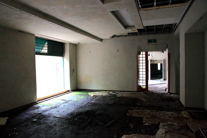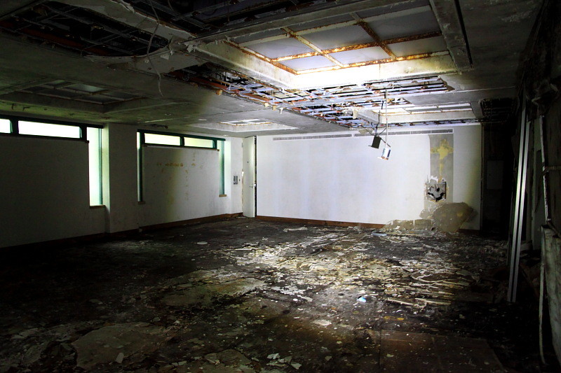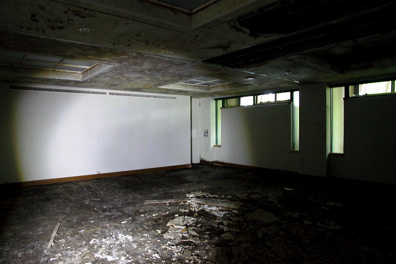 隣接する三洋証券の廃墟2階から見る建物全景。