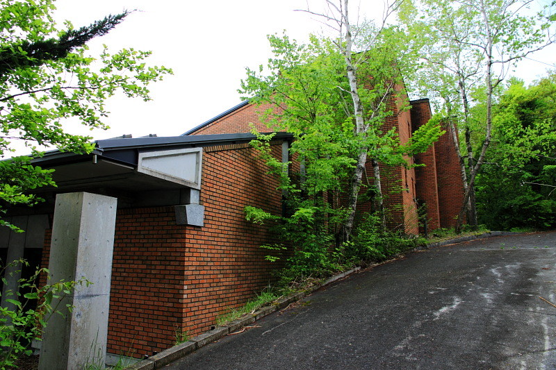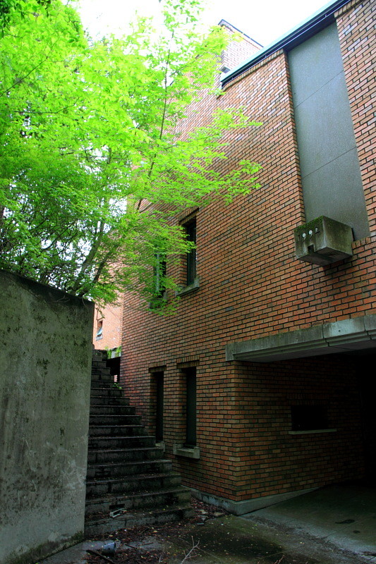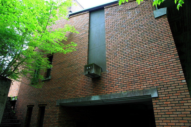 緩やかな傾斜に沿って建つ煉瓦貼りの建物。