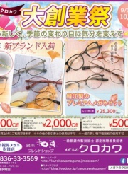 宇部市のメガネ店 メガネのクロカワ本店の2代目が新製品やイベント・売り出しなどの情報をメインに…のはずが大半は趣味の写真ブログとなってます(笑) ただ私自身が超々強度近視なのでそのことでお役に立てることをいろいろ発信していく予定でもあります。