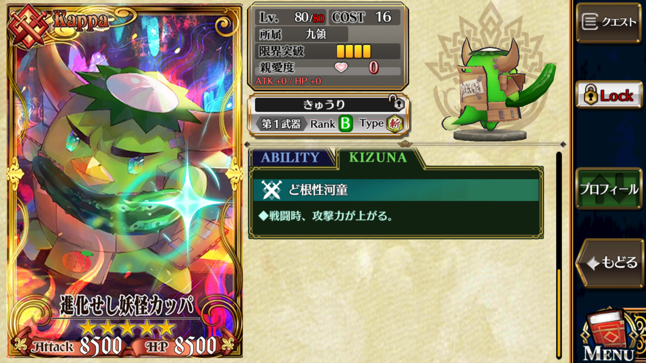 「進化せし妖怪カッパ」です!繰り返し型をプレイすれば4凸可能です!