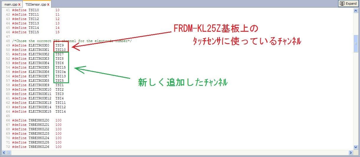 まずはTSISensor.cppで使用するチャンネルの数を変更します。