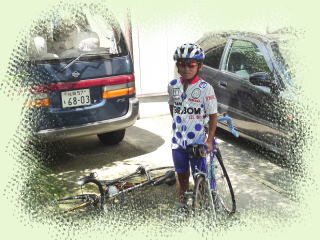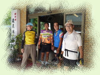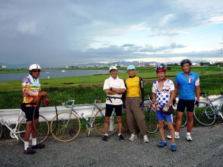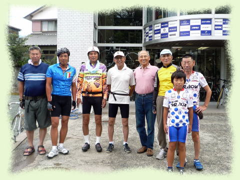 今日は清水山まで片道約40K往復80Kのサイクリングです。9時にイワイスポーツサイクル前に集合しました。久々の私の姿のまあラフなこと。今日の参加は7名です。