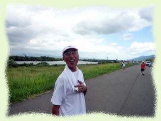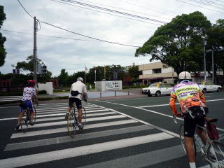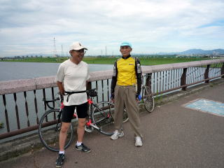 豆津橋の上で後続を待ち。