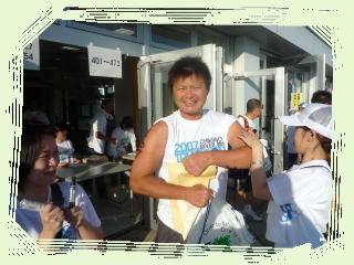 出場者も受付をして腕にマジックでゼッケンナンバーを書いて貰います。今日のキムキムの成績はどうでしょう。