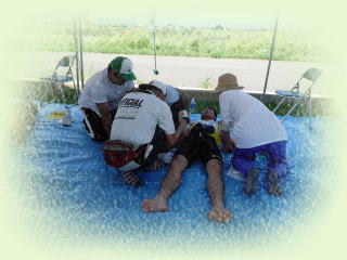 救護テントも騒がしくなってきました暑いので気分が悪くなる人が多く出そうです。