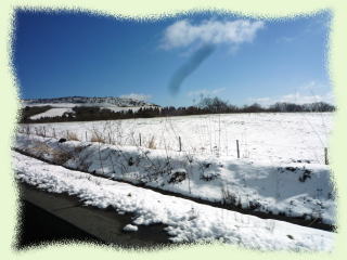 3号線から、菊池スカイラインを抜けオートポリスを目指します、寒い雪が積っています
