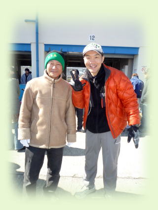 一応レースクイーンも居るようですが、寒いせいかいつも丹前を着ている、”どてらクイーーン”でしたいよいよスタートです