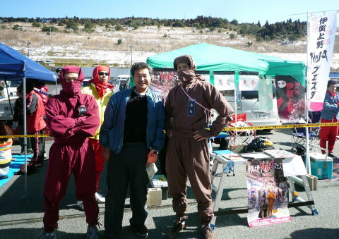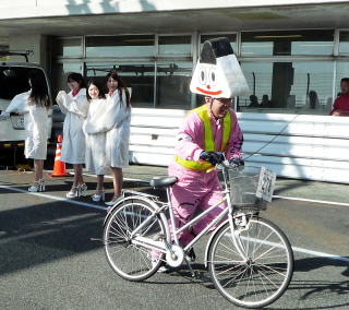近所の郵便局長さんも参加していました伊賀上野からは、忍者が自転車に乗ってやって来ています!