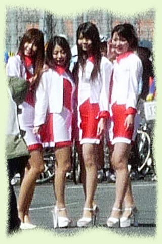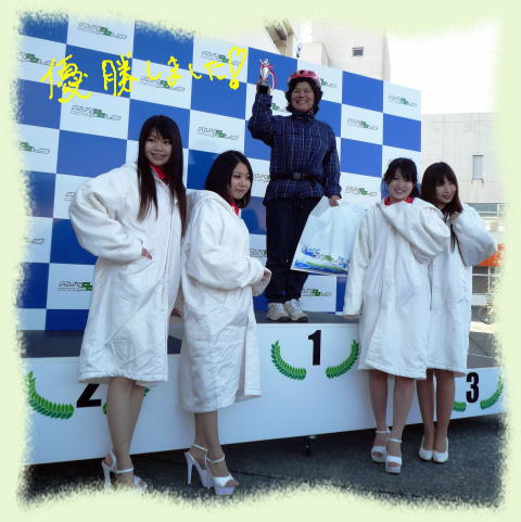 一応レースクイーンも居るようですが、寒いせいかいつも丹前を着ている、”どてらクイーーン”でした
