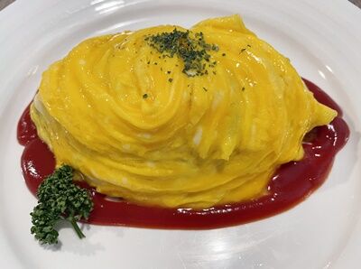 ランチタイムメニューを見ながら、徳君におすすめを聞いたところ、お店の人気メニューがオムライスとのことだったので、男性3人はオムライスを注文。