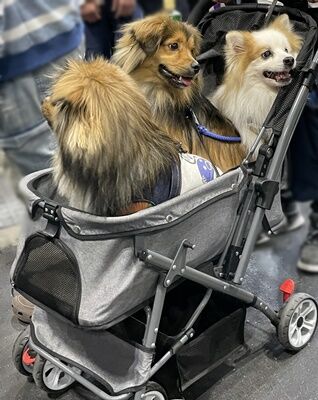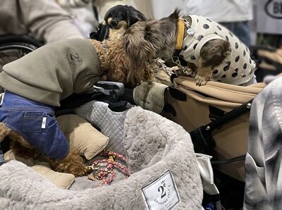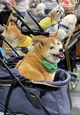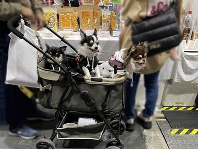ここ数年間は、犬用のバギーやカートで来場される方が増えてきていた印象なのですが、今年は7対3くらいの割合で、昨年以上にバギーやカートを使わずそのまま歩いているワンコの方が多い印象でした。(2日目以降は増えたのかもしれませんが)