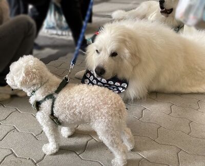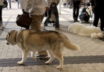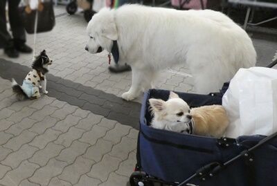 インテックス大阪の入り口付近や会場までの道中では、一緒に会場に入られる誰か他の方と待ち合わせしておられるワンコ連れの方が複数組おられました。