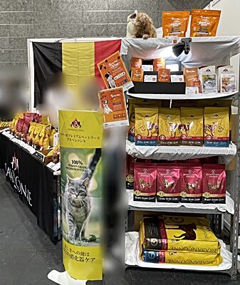 4号館の中央付近で大きくブース展開しておられる海外(たしかカナダ)のフードメーカーさんは今年もアンケートや試供品のフードの配布を行っておられました。