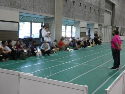 イベントコーナーでは、ちょうど大運動会が始まるところで、エントリーした飼い主さんとワンちゃんが順番に呼び出され、左右に分かれて出走の準備をされているところでした。