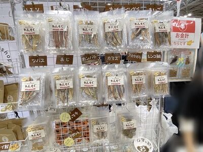 様々な魚種のジャーキー(干物)が販売されていましたが、今年も、味や栄養価の違いが表記されておらず、どれを買えばよいのかがよくわかない状況は同じでした。
