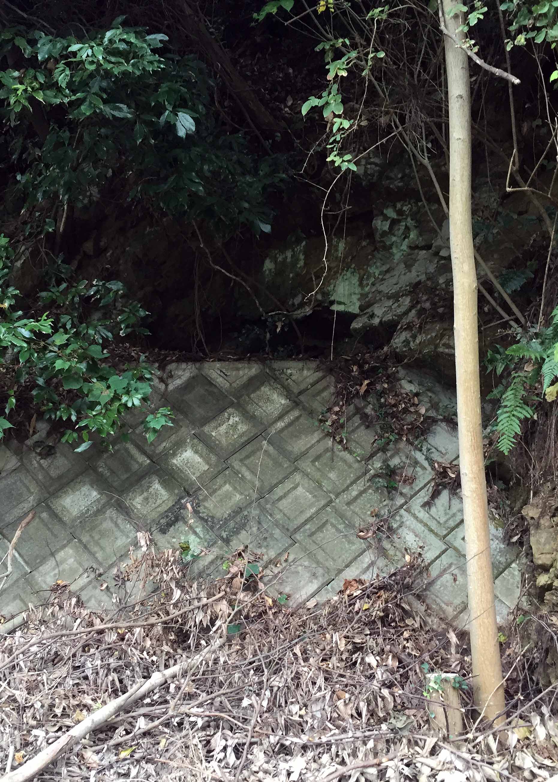 この山はほぼ住宅地となってしまったが、ドングリ集めにはちょうど良い山なのだ。頂上から麓へとゆっくりと散策していると、気になるところを発見!