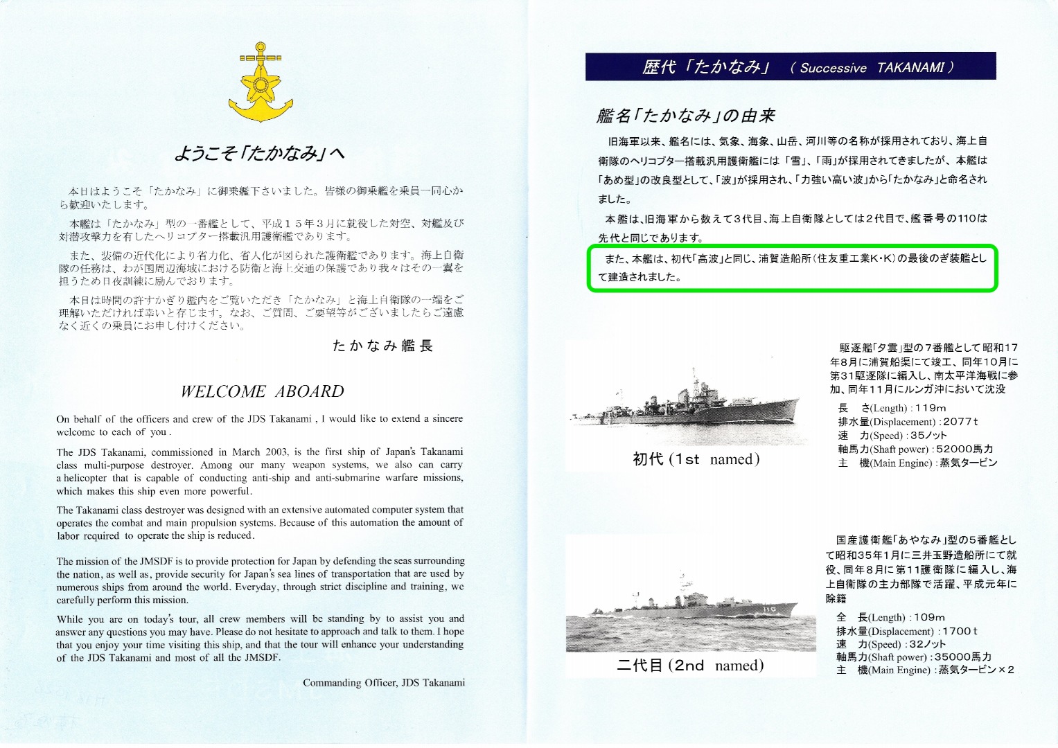 浦賀では、はつゆき と たかなみ が建造された。