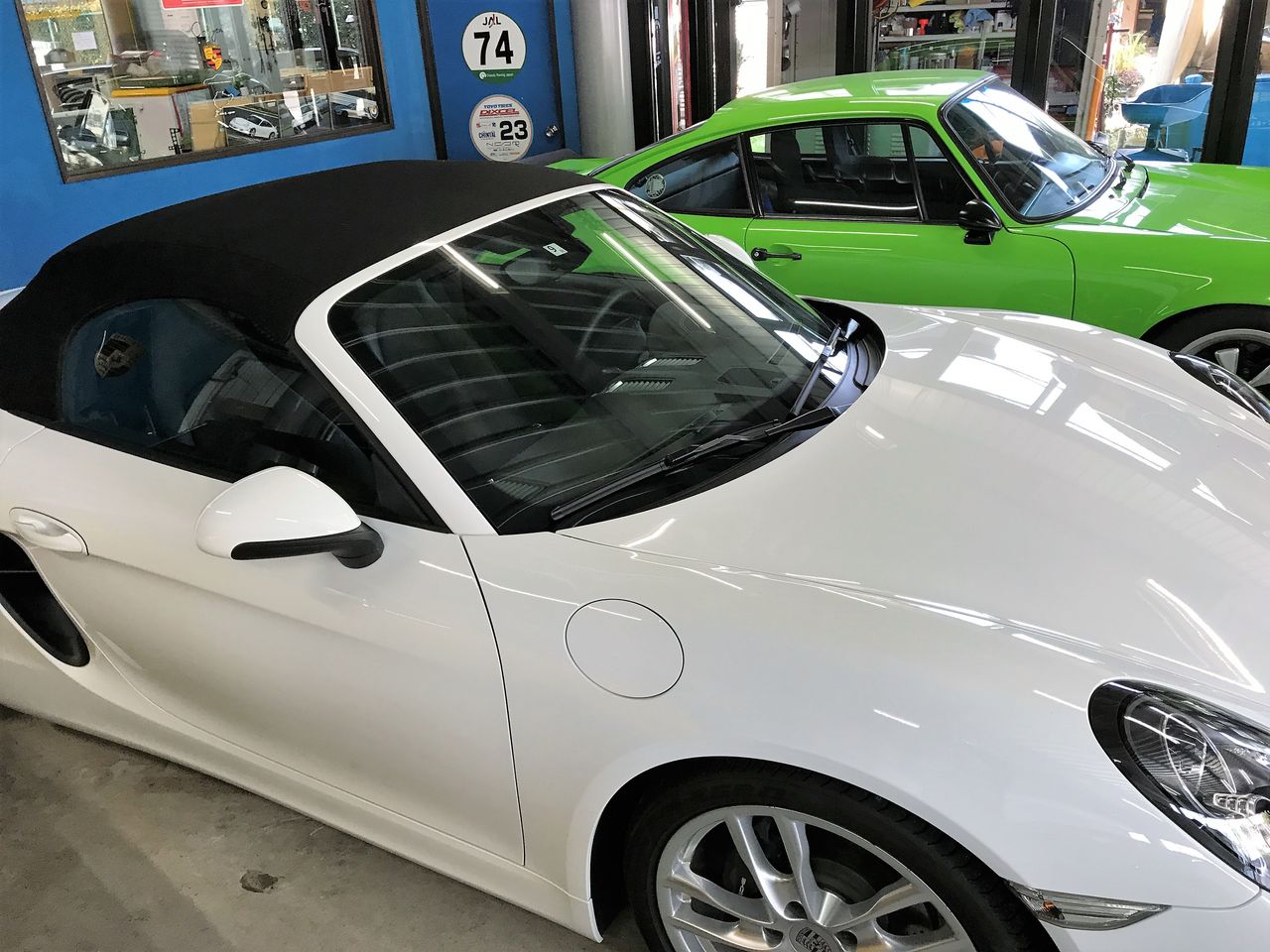 オイル交換待ちの時に、売り物の981を眺めていたが、何が気になってるかというと、ボディの色と幌の色のマッチング。
