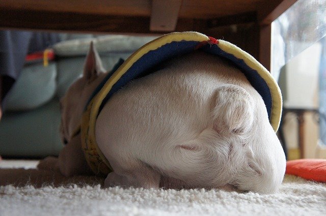 何してるっちゃテーブルの下に隠れて。。。