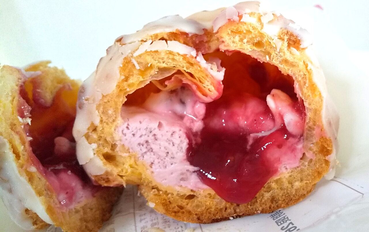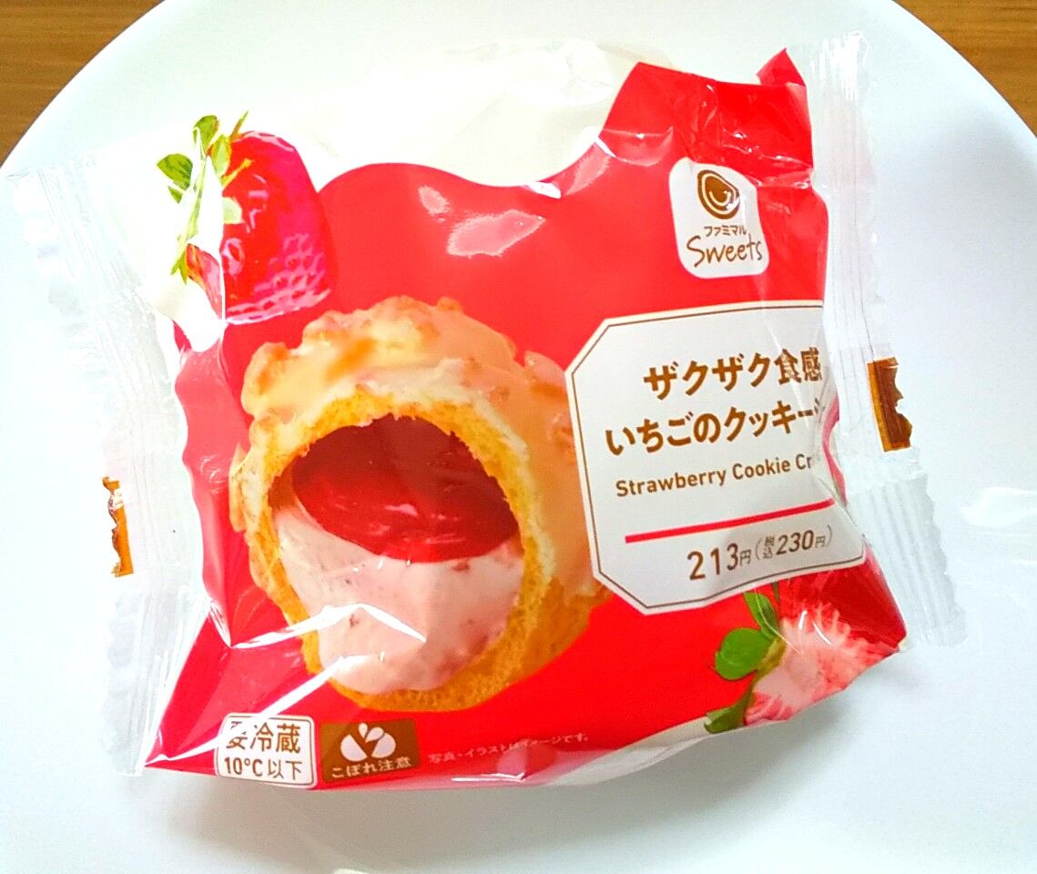 ザクザク食感のクッキーシューにいちご果肉入りのいちごクリームといちごソースを入れました。ファミマ公式サイトより