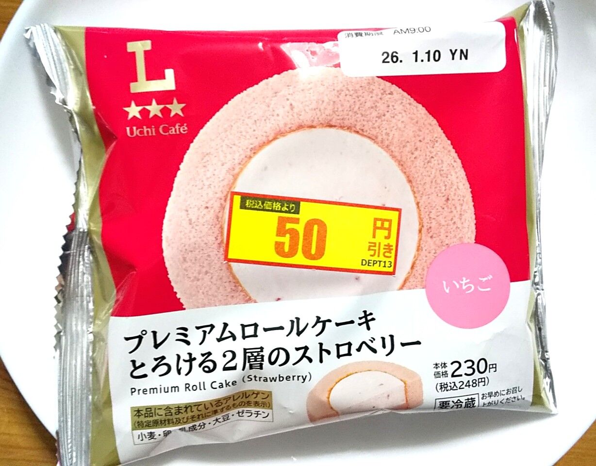ふんわり生地と2層のとろけるいちごクリームが楽しめるロールケーキ。ローソン公式サイトより