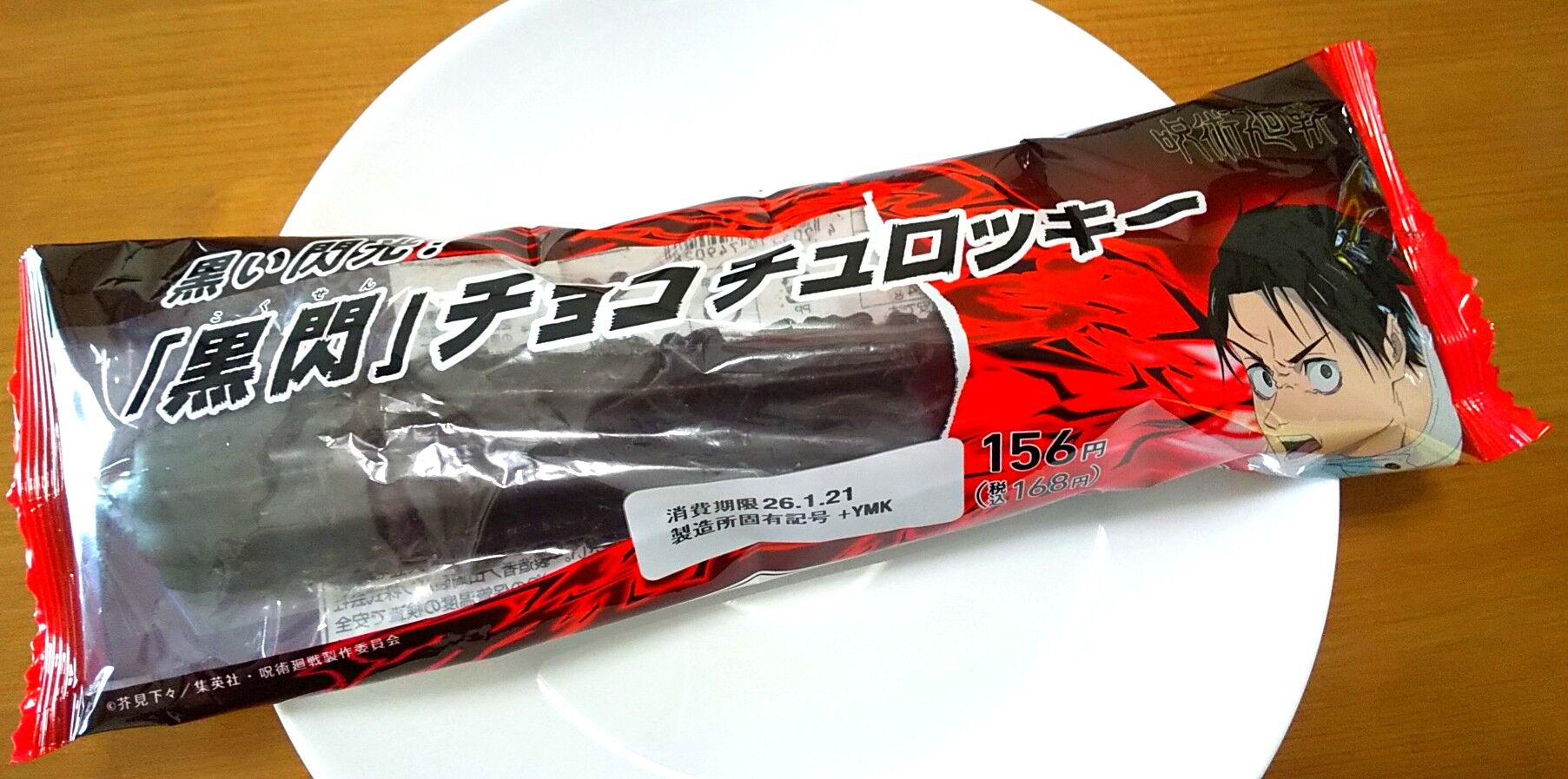 稲妻のように衝撃が走る打撃「黒閃」をイメージしたチョコ味のチュロッキーです。『死滅回游』デザインのパッケージは全2種です。ファミマ公式サイトより