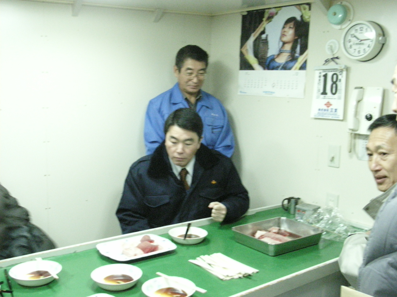 2007年12月20日 みやぎの現場・訪問事業 今年7回目、気仙沼地方は2回目の、村井知事による現場訪問事業に同行しました。最初の訪問先海青丸のサロンで、昨日水揚げしたばかりのメカジキやバチマグロなどご馳走になりました。漁法や保冷技術など先進的な取り組みを試験的に行っていますが、成果は徐々に上がってきているようです。昭和初期の建物を調査した風待ち研究会の皆さんと市内の視察があり、リアス美術館まで同行してから仙台にきましたきました。 今晩はこの後、宮城のかきの販売促進の催しがあります。