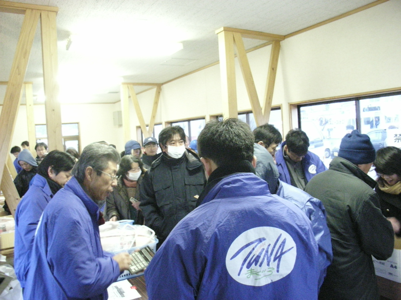 2007年12月23日 まぐろ直販 早朝年末恒例の、北カツ主催のまぐろ直売会です。7時からの販売なのに、一番早い人は4時から並んでいたそうです。開始時間には200名近くの行列で大変な賑わいでした。燃油高騰で厳しい状況が続きますが地域の基幹産業として何とか踏ん張ってもらいたいとねがっています。 午後、気仙沼市も舞台となった、自虐の詩 の上映会があり全く久しぶりの映画鑑賞です。画面いっぱいにひろがる気仙沼港はやっぱり素晴らしい景色ですね。笑ったり泣いたり忙しいひと時でした。