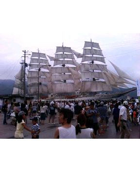 2008年07月20日 海フェスタ お隣、岩手県で海フェスタが開催されています。今日は、大船渡市まで行って視察してきました。写真は帆船日本丸です。深海調査研究船かいれいも着岸していました。水深七千を探査するかいこうも見てきました。