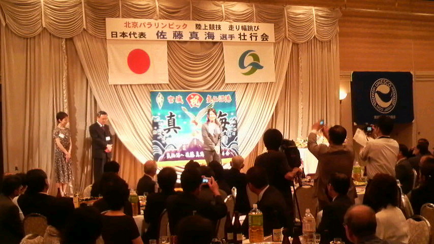 2008年07月22日 壮行会 知事との懇談を終えてから気仙沼に戻りました。パラリンピック陸上に出場する佐藤真海選手の壮行会に出席しました。二大会連続出場の快挙です。笑顔がとても素敵です。みんなで元気をもらいました。