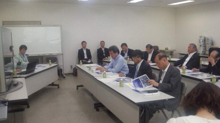 2015年05月27日 続 視察 特別委員会の県外視察二日目です。午前中は宮城県大阪事務所の調査でした。質疑や意見交換では、企業誘致のための会社訪問や、県産品の販路拡大の物産展の開催など、盛りだくさんの事業に、少人数で懸命に取り組んでいる職員の努力が伝わってきました。 午後からは、防災施設の技術革新に取り組む堺市の日立造船で、フラップゲートの最近の実証実験の状況についての調査を行いました。景観に配慮したり、電源の心配のない様々な機能を考慮した施設として評価できます。
