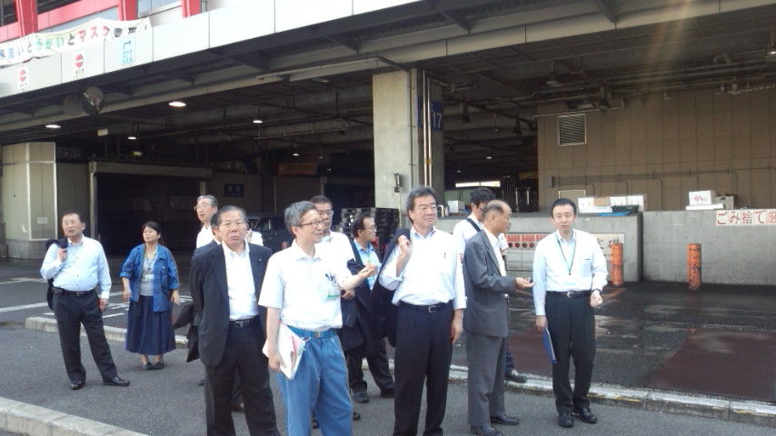2015年05月26日 県外調査 大規模震災対策の特別委員会の県外調査です。県産品の流通の現状を把握するため大阪市中央卸売市場を視察しました。震災前の平成22年の宮城県の生鮮水産物取り扱いは、数量で約3千5百トン、金額は約18億円でした。26年には、数量で約2千5百トン、金額で約16億円まで回復していました。前年比170%の伸び率でした。データーからは風評被害の実態を読み取ることはできませんでしたが、仲卸の皆さんはまだ慎重な姿勢を崩してはいないという説明でした。明日は県の大阪事務所で引き続き調査を行います。
