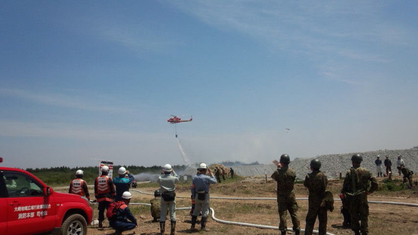 2015年05月23日 訓練 今日は、色麻町の陸上自衛隊王城寺原演習場で宮城県林野火災防ぎょ訓練が行われました。自衛隊などのヘリコプター4機も参加した大がかりな訓練です。山林火災は消火活動にあたる人たちが一瞬のうちに火災に巻き込まれる危険性があります。県民の安心安全の確保のため、消防関係者の真剣な取り組みに敬意を表します。